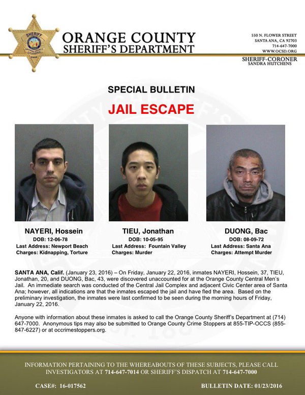 DJ Furia ha escrito una nueva entrada, Tres presos, uno condenado por asesinato, se fugan de la cárcel de Orange hace 9 años, 9 meses